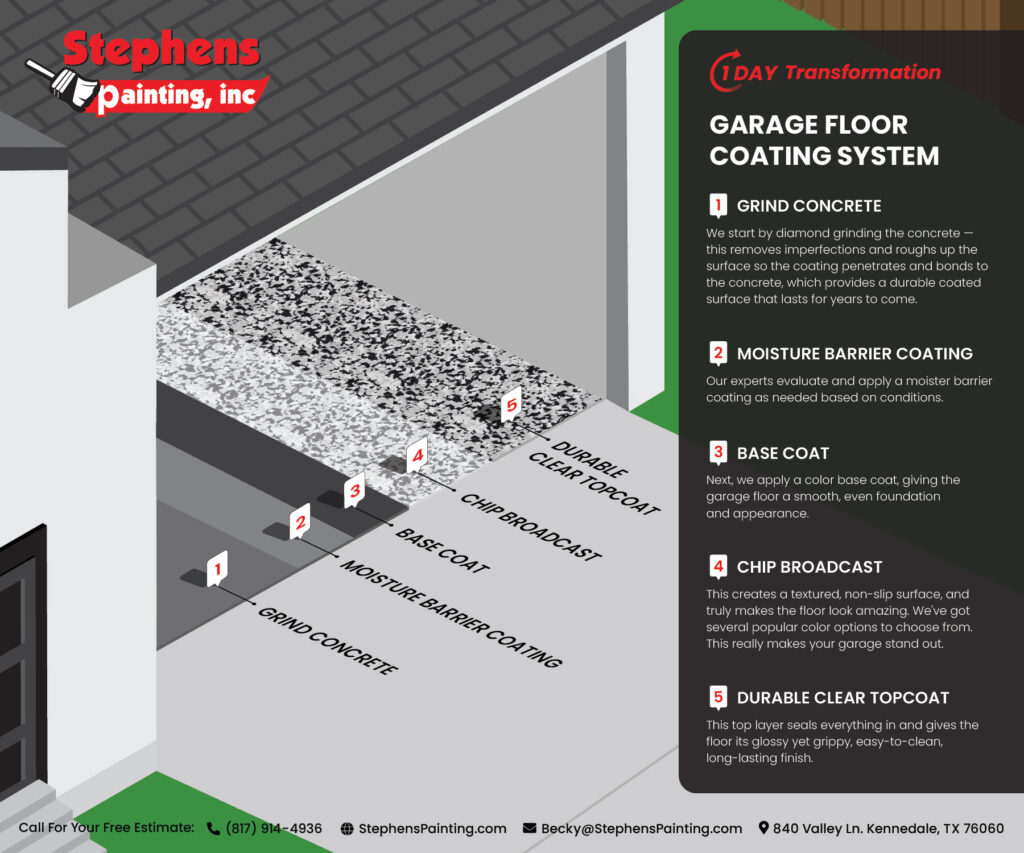 Elevate your garage with durable, stylish, and low-maintenance garage floor coatings from Stephens Painting. Contact us today for a free consultation and let us help you redefine your space!